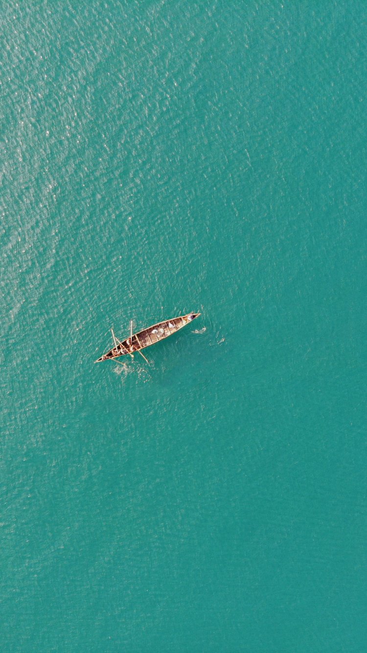 лазурное море, лодка, вид сверху