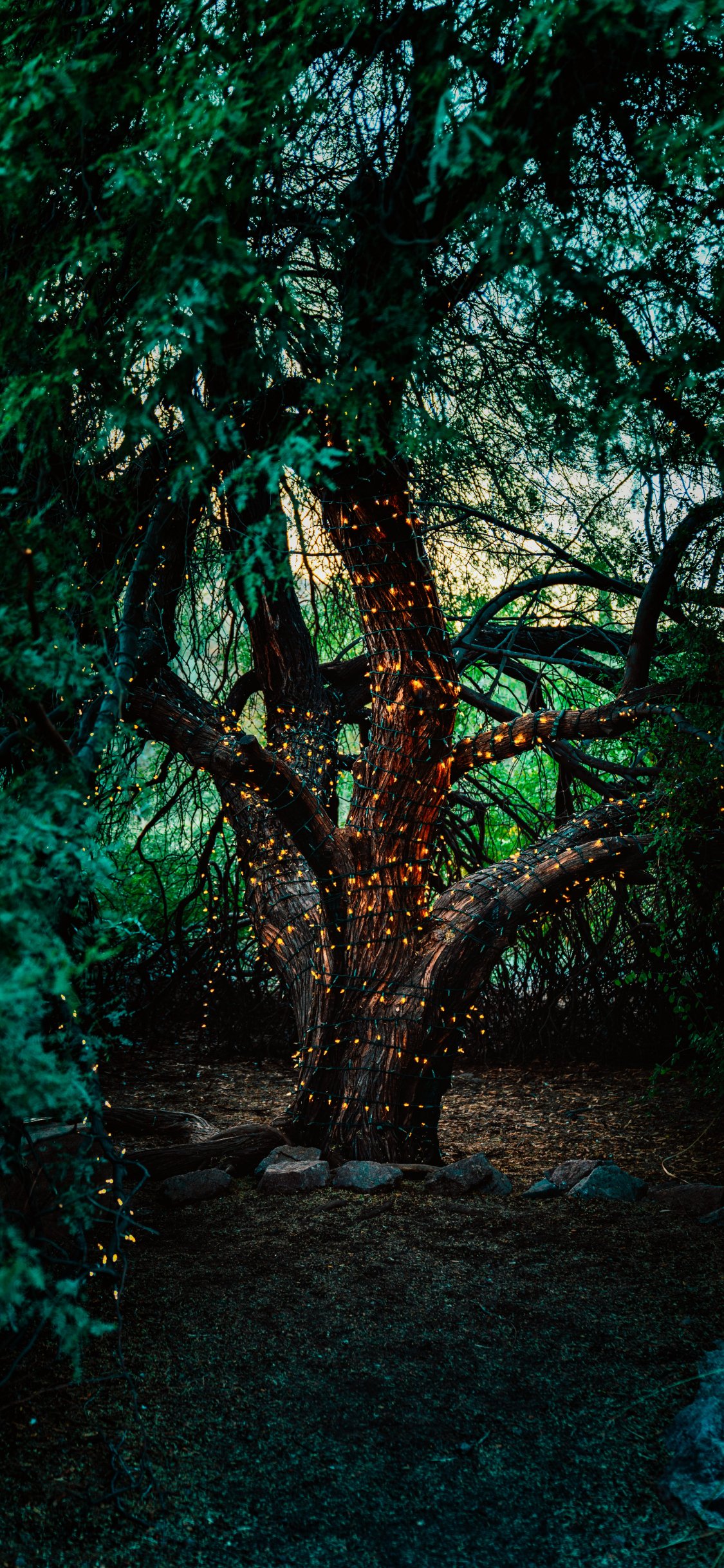 Обои: дерево, огни - 1125x2436
