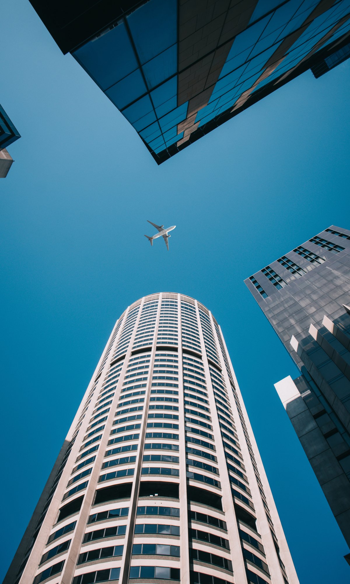 Обои: самолет, здания, высота - 1200x2000