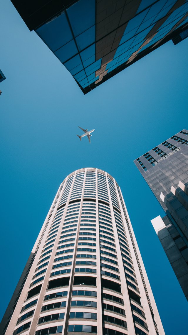 Обои: самолет, здания, высота - 640x1136