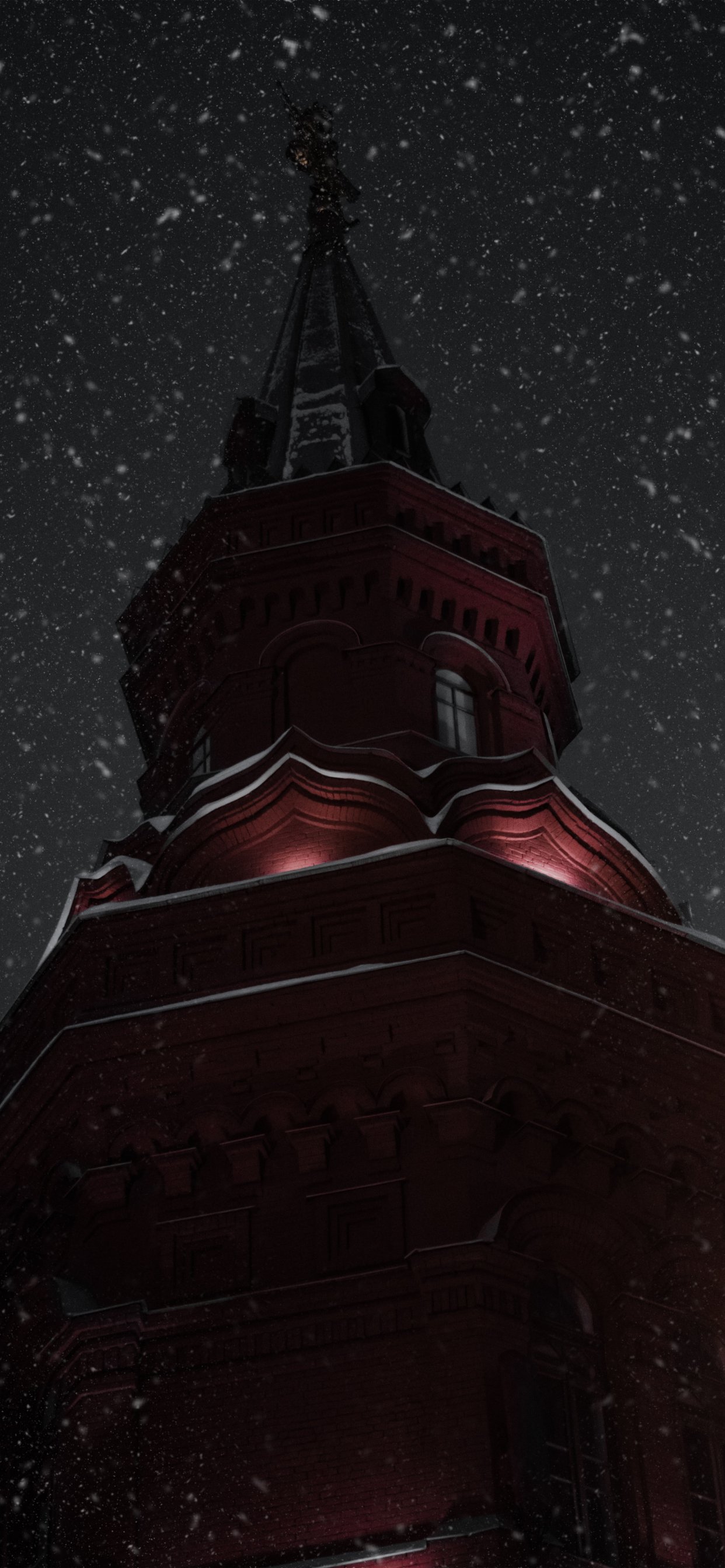 Обои: ночь, снегопад, башня - 1242x2688