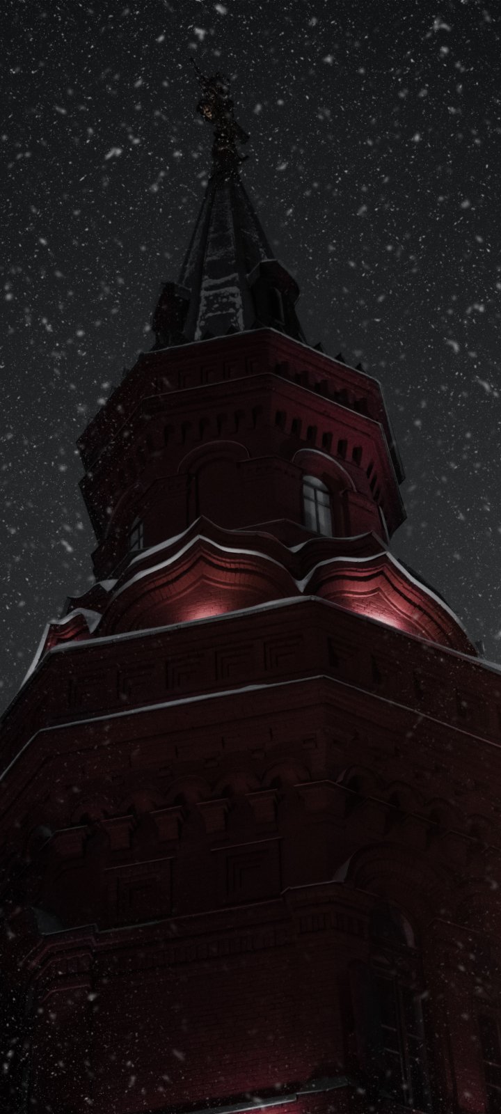 Обои: ночь, снегопад, башня - 720x1600