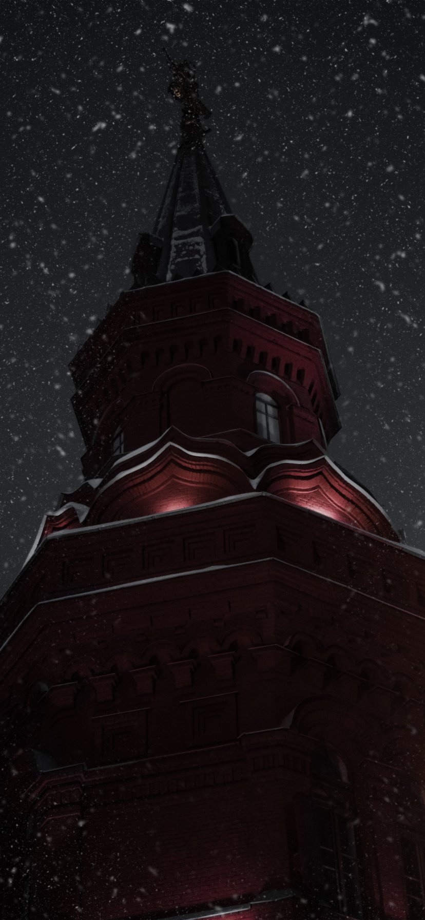 Обои: ночь, снегопад, башня - 828x1792