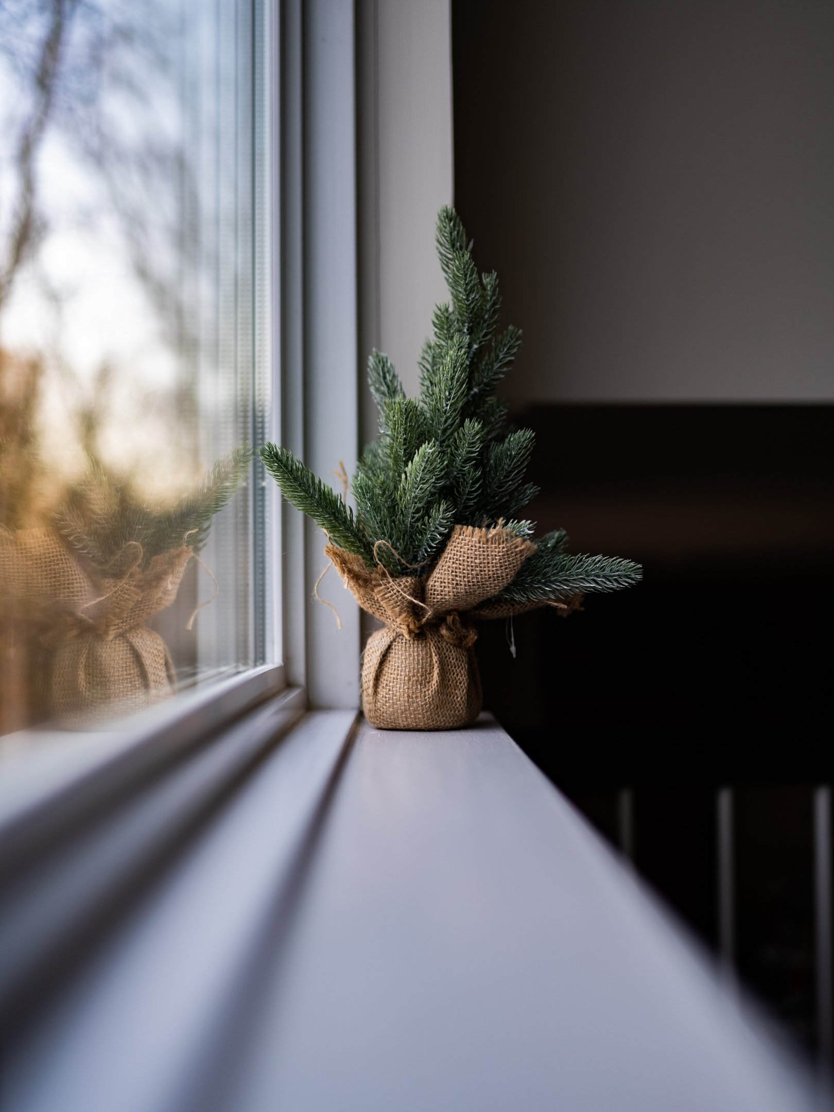 Обои: ель, декор, подоконник - 1620x2160