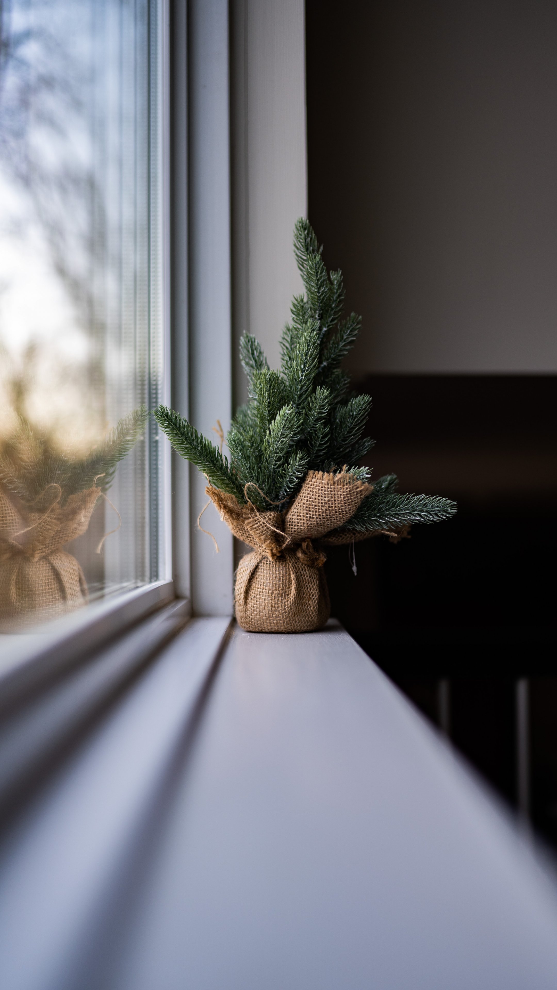 Обои: ель, декор, подоконник - 2160x3840