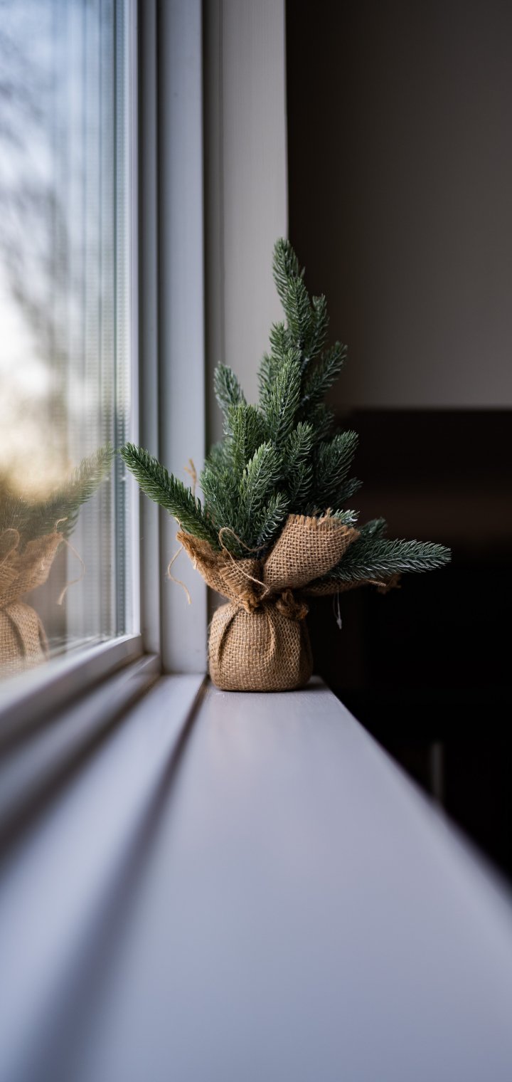 Обои: ель, декор, подоконник - 720x1520