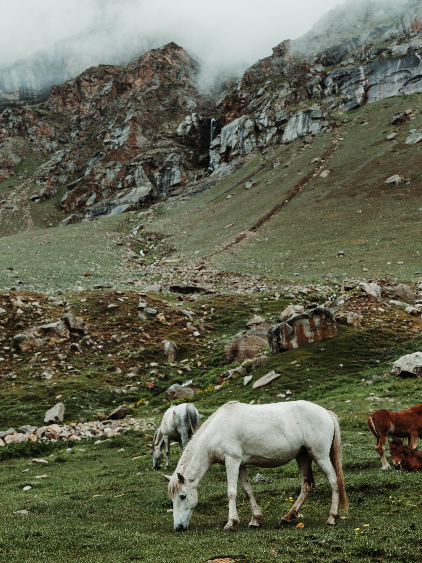 табун лошадей, горная местность