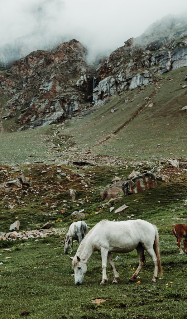табун лошадей, горная местность