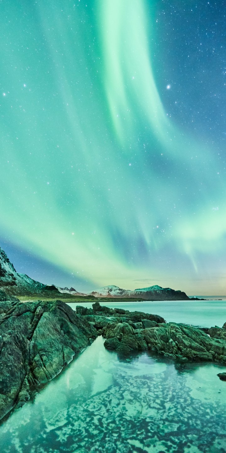 Обои: северное сияние, Лофотенские острова - 720x1440