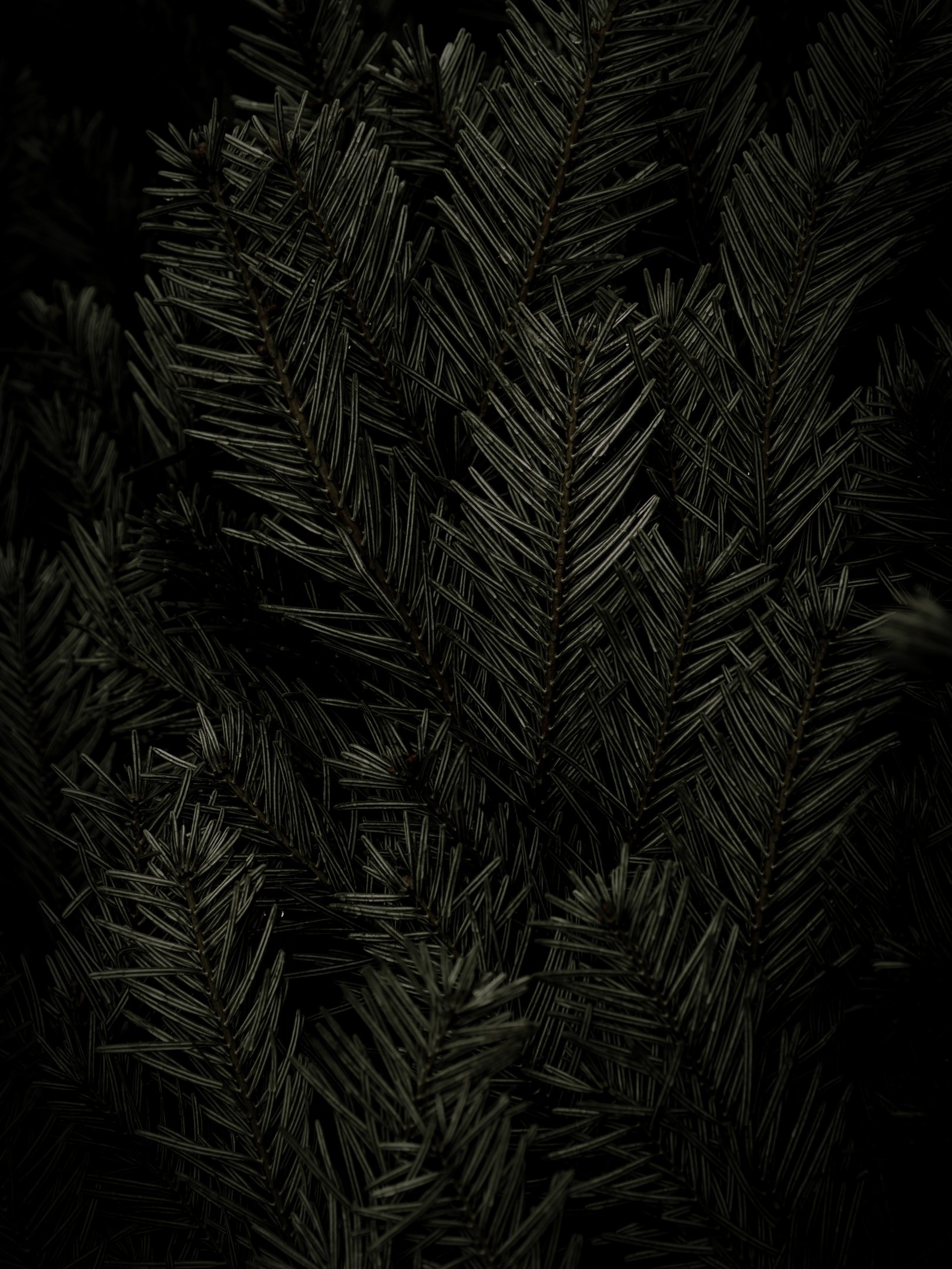 хвоя, зеленый, черный фон