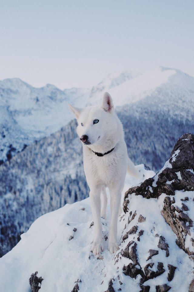 Обои: собака, горы, снег - 640x960