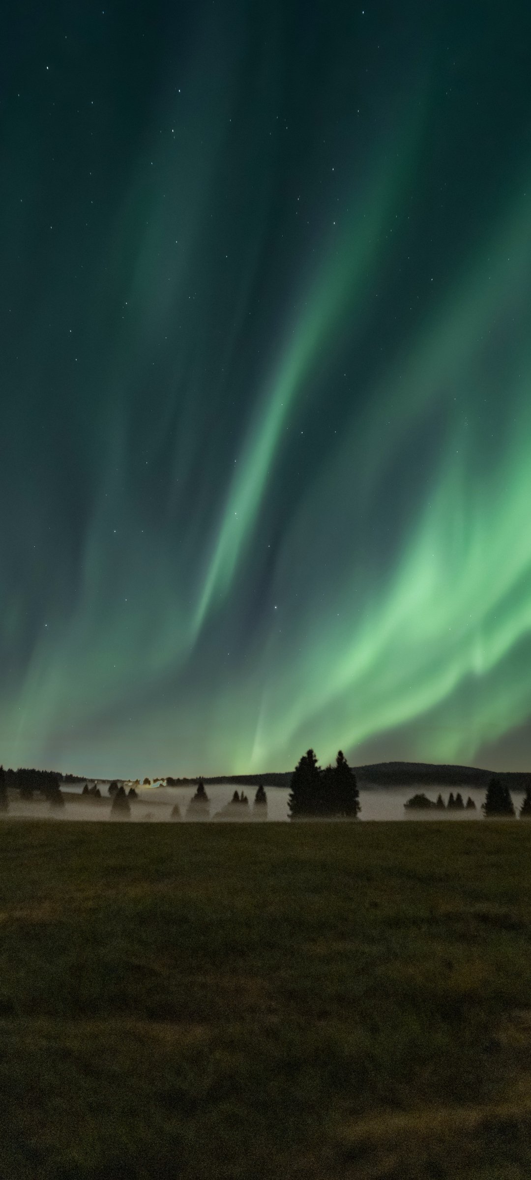 Обои: северное сияние, ночь, туман - 1080x2400