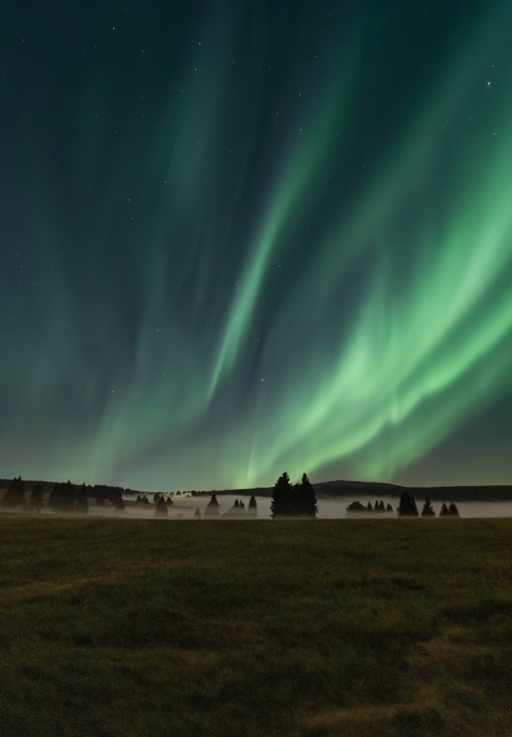 Обои: северное сияние, ночь, туман - 1640x2360