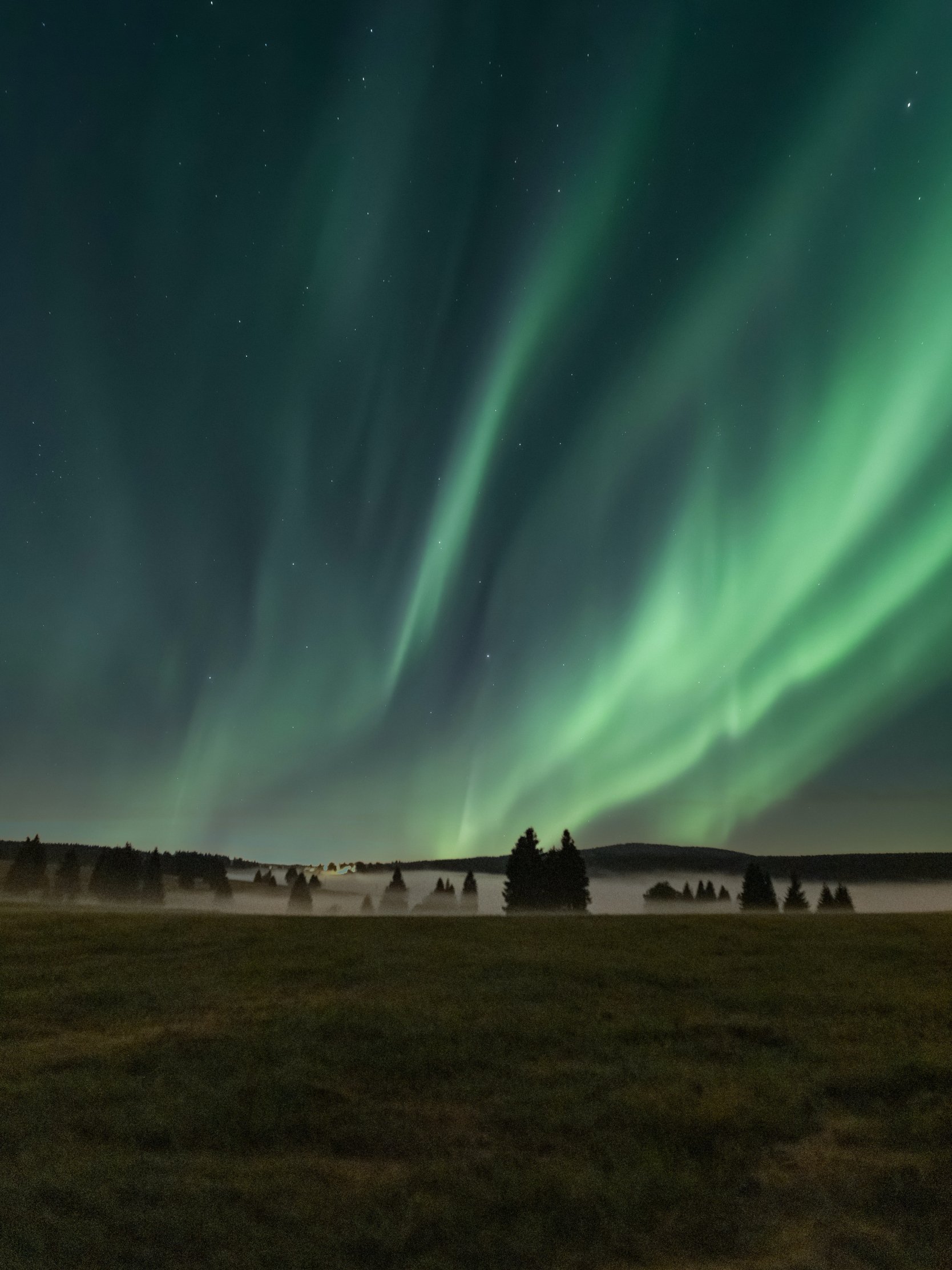Обои: северное сияние, ночь, туман - 1668x2224