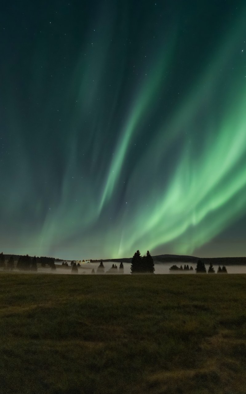 Обои: северное сияние, ночь, туман - 800x1280