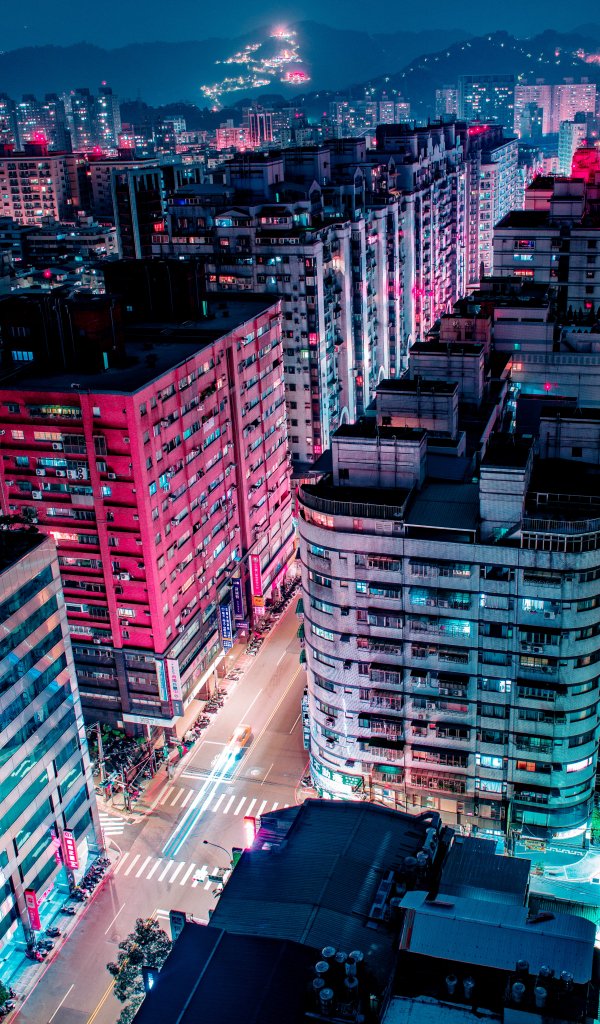 Обои: Нью-Тайбэй, Тайвань, ночной город - 600x1024