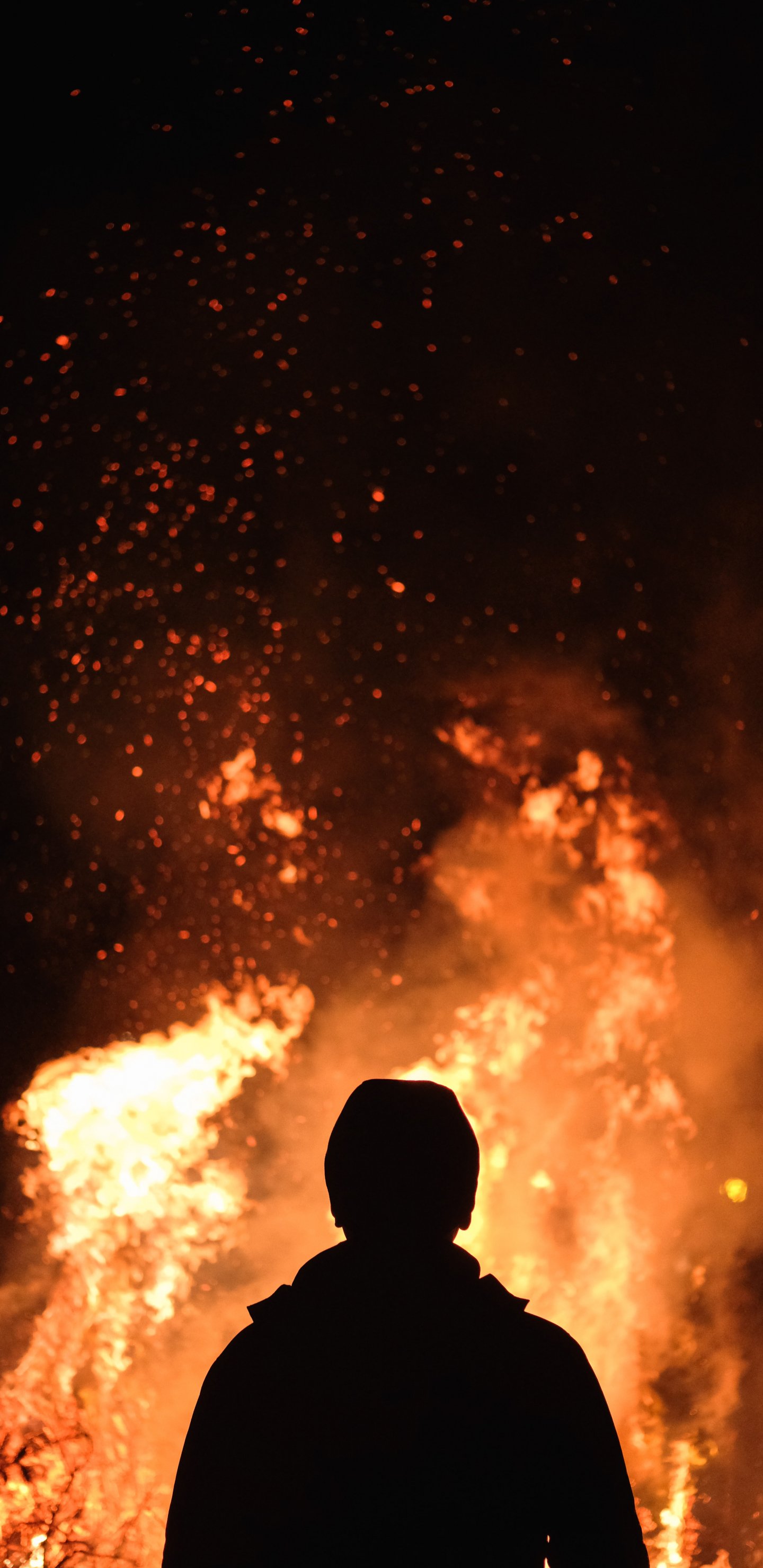Обои: огонь, человек, ночь - 1440x2960
