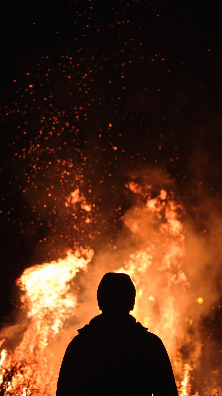 Обои: огонь, человек, ночь - 750x1334