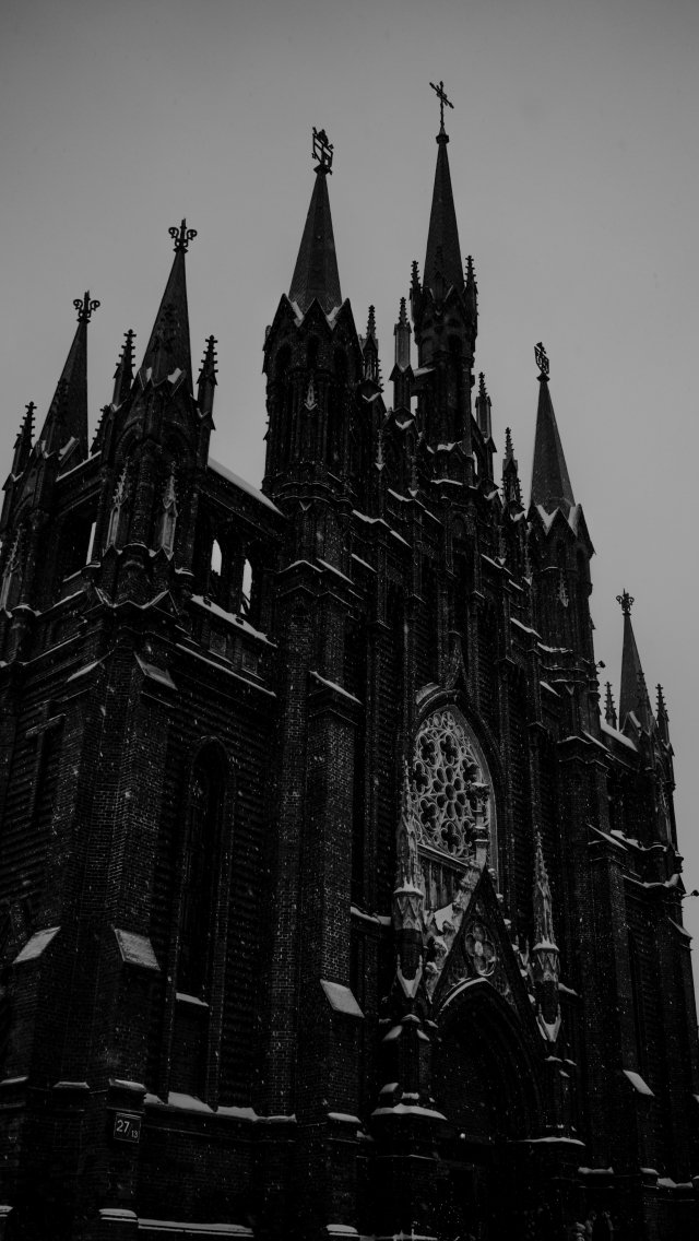 Обои: собор, снегопад - 640x1136