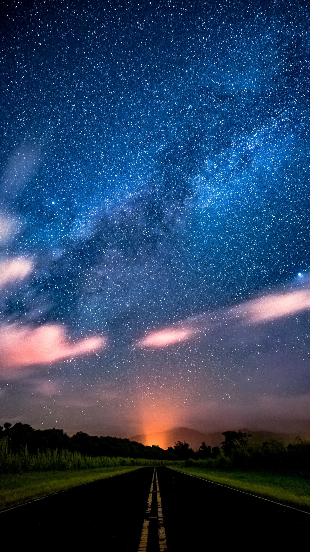 дорога, ночь, звездное небо