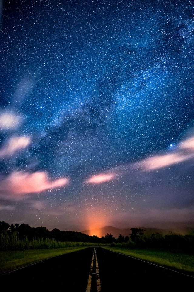 дорога, ночь, звездное небо