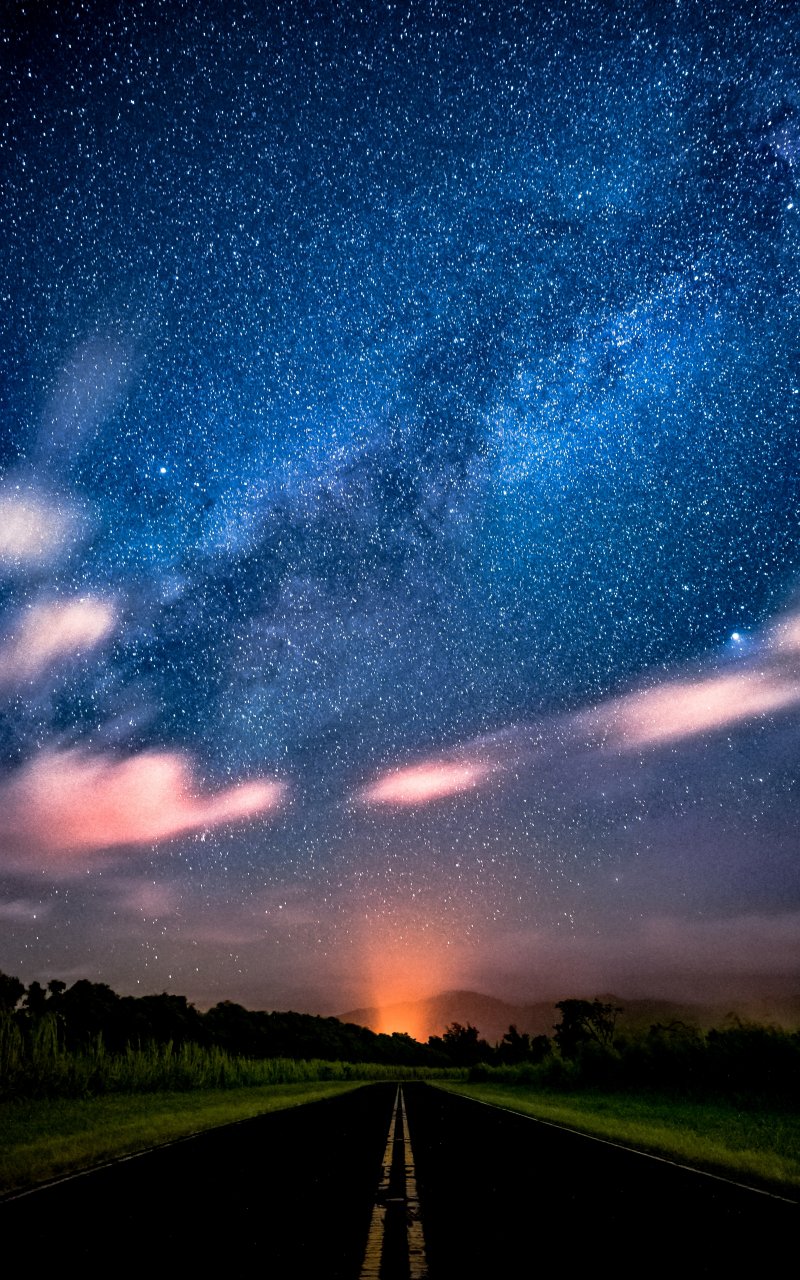 дорога, ночь, звездное небо