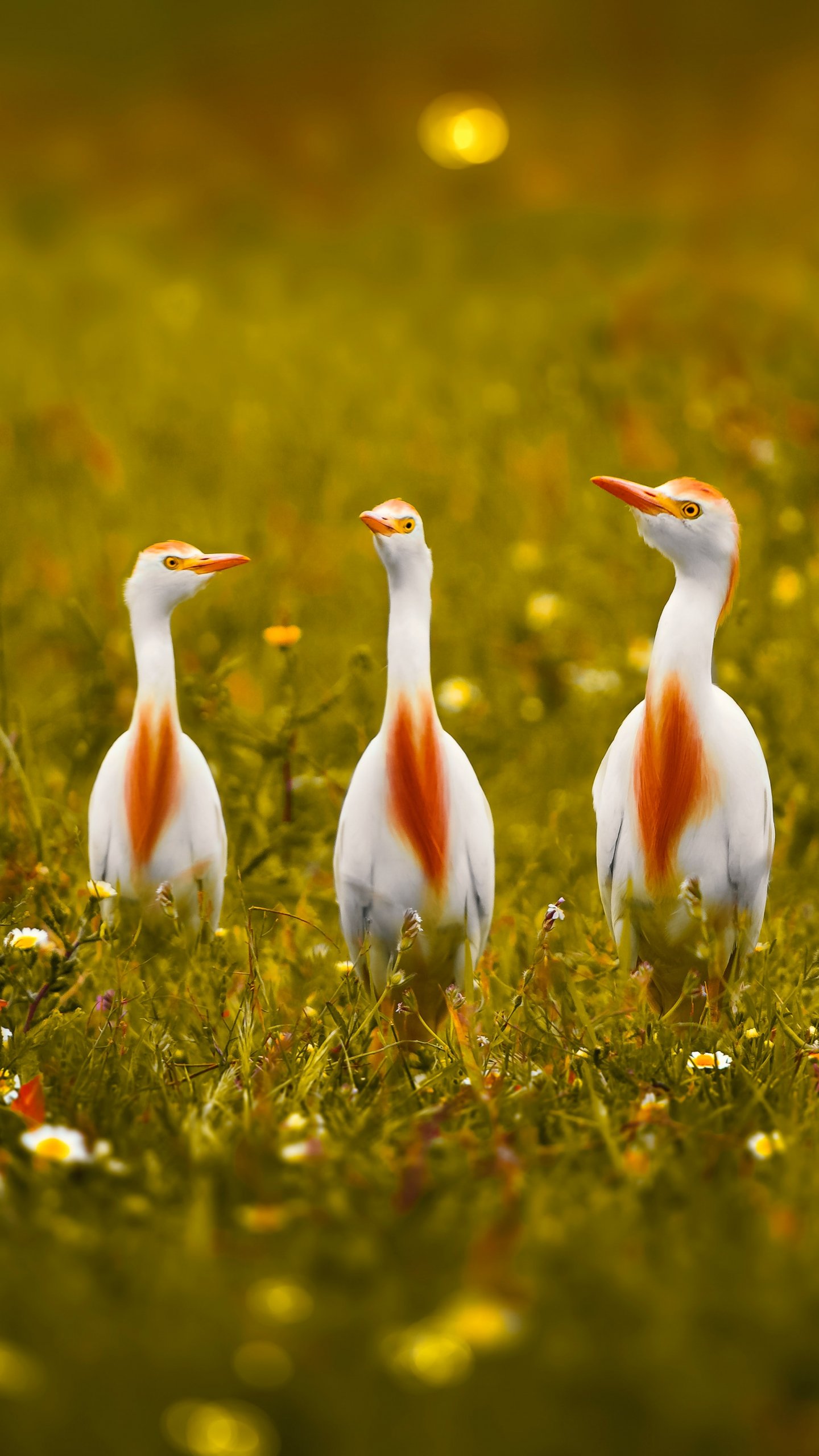 Обои: птицы, трава, желтые глаза - 1440x2560