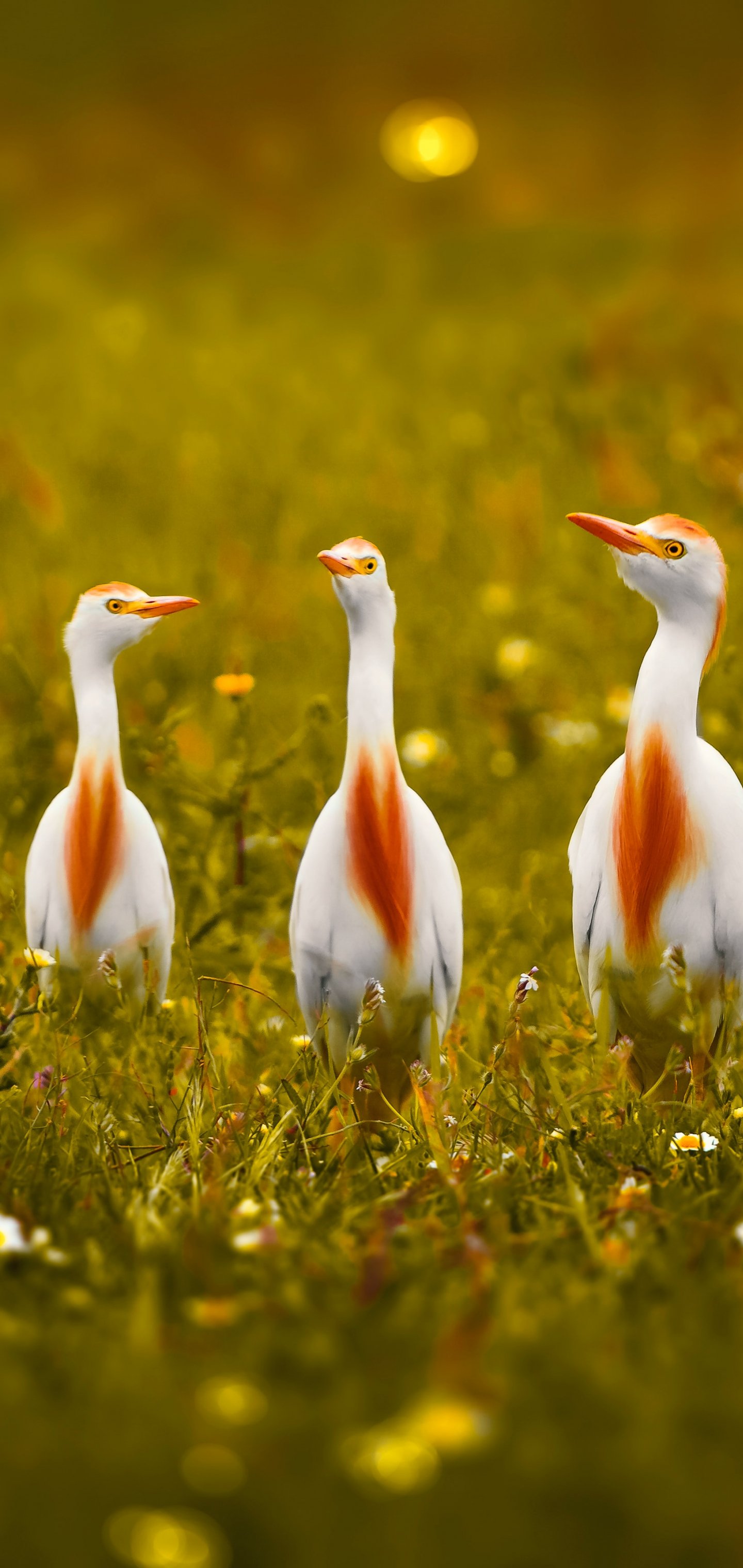 Обои: птицы, трава, желтые глаза - 1440x3040