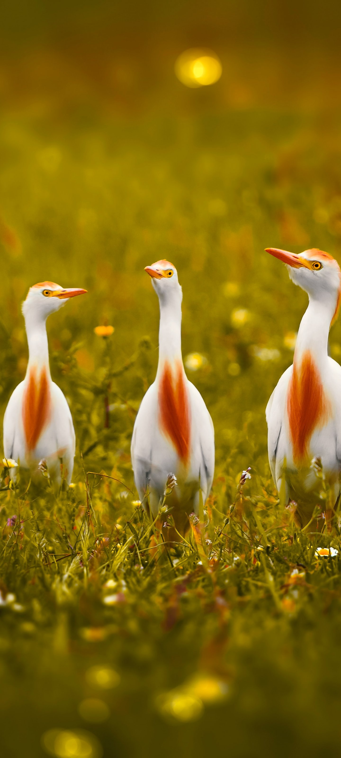 Обои: птицы, трава, желтые глаза - 1440x3200