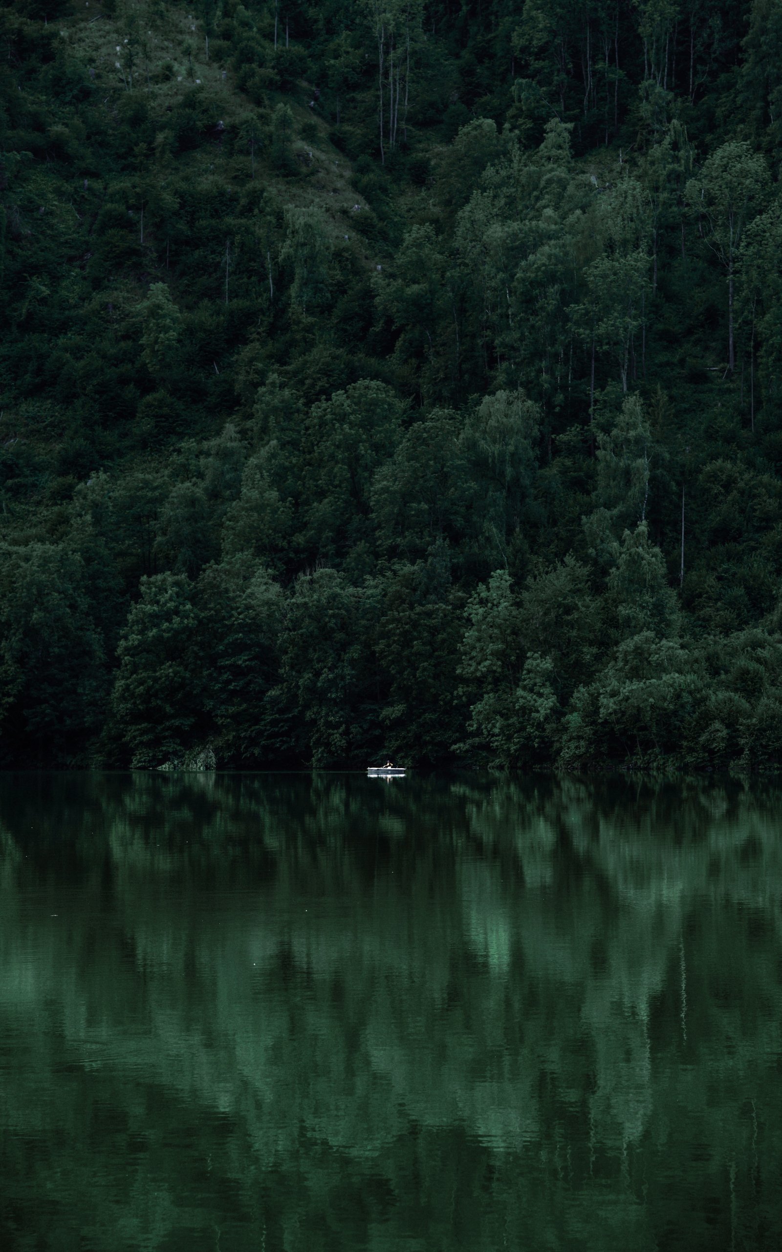 лодка, озеро, туман, горы