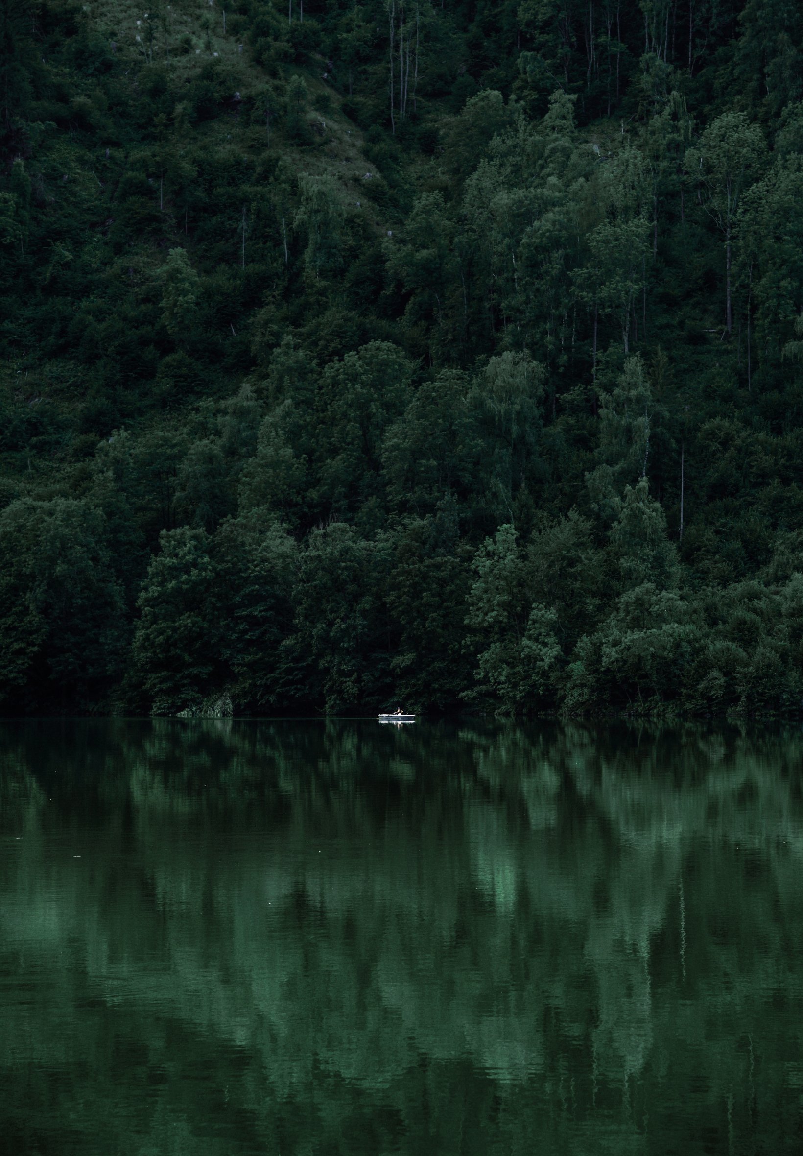 лодка, озеро, туман, горы