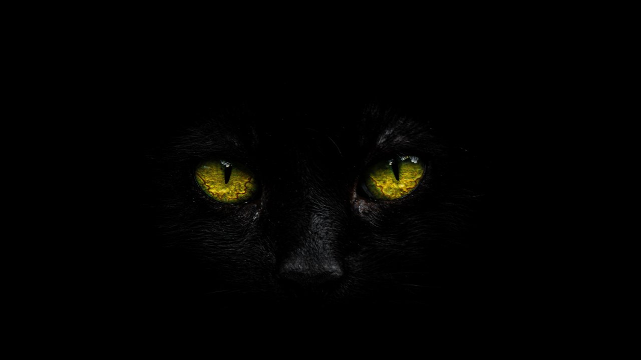Обои: желтые глаза, черный - 1280x720
