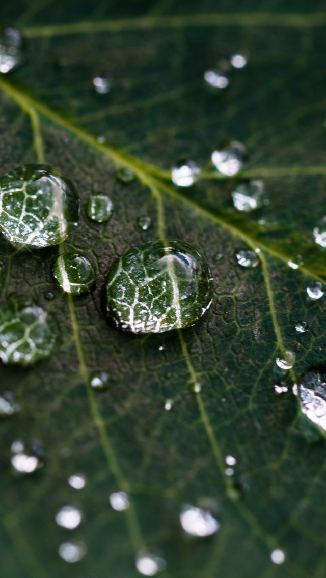 Обои: капли воды, лист, зеленый - 640x1136
