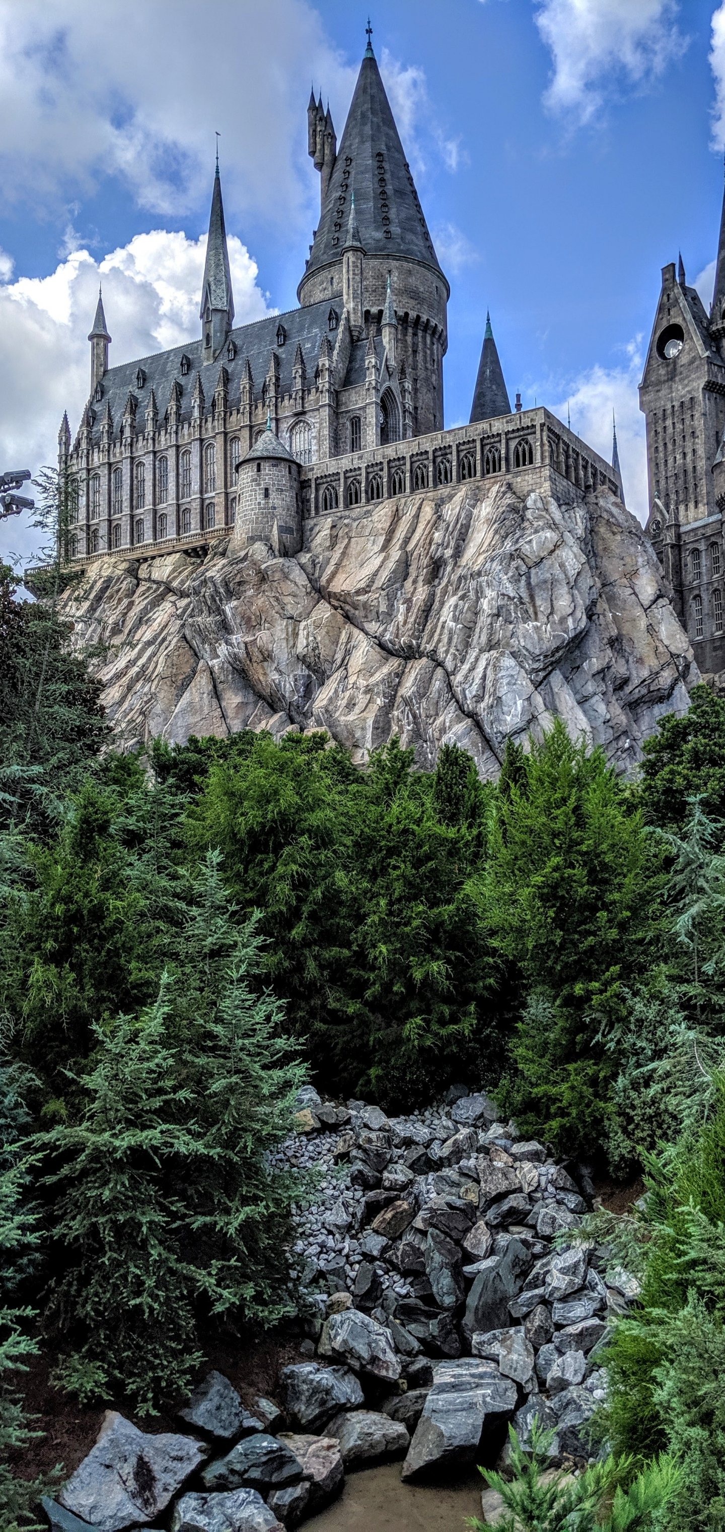 Обои: Хогвартс, замок, хвойные деревья - 1440x3040