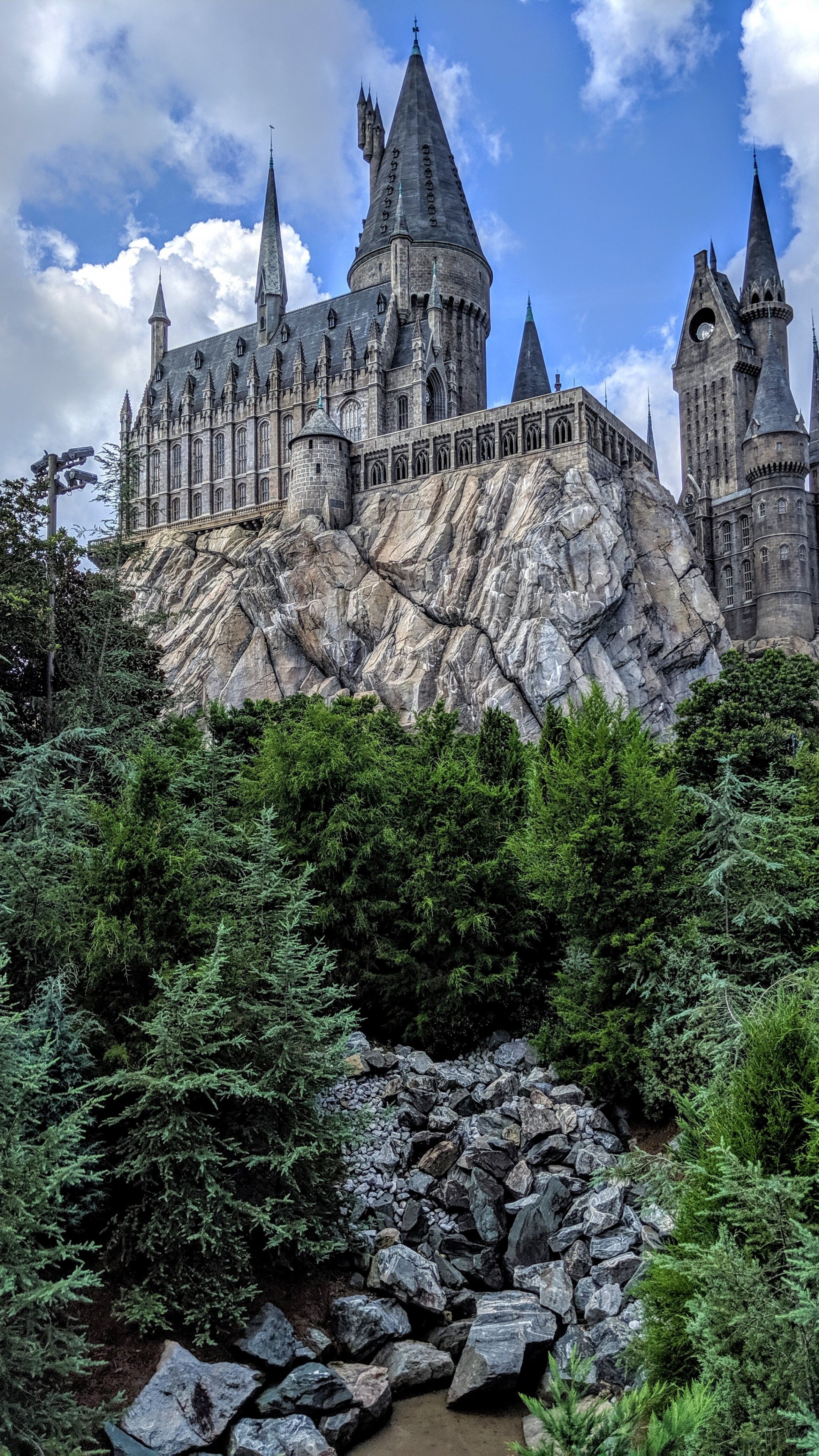 Обои: Хогвартс, замок, хвойные деревья - 2160x3840