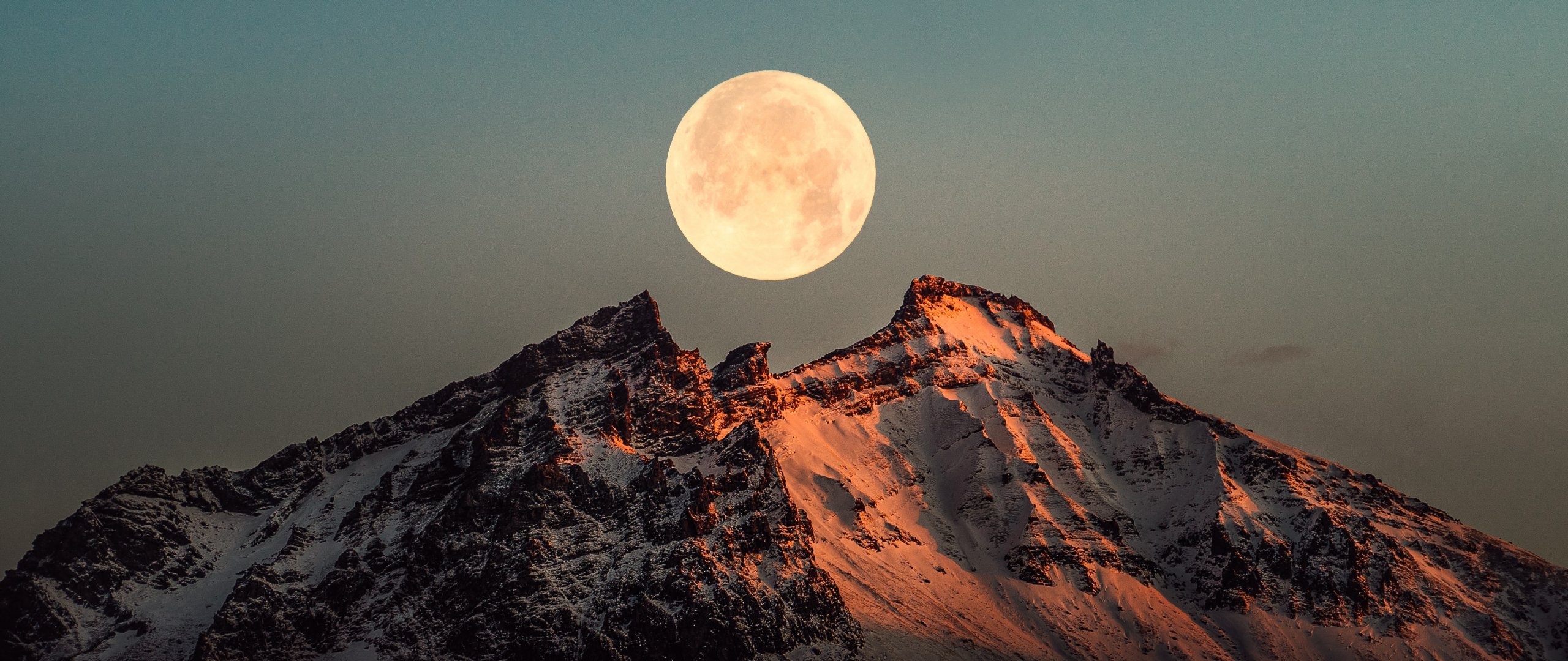 Обои: Исландия, луна, горы - 2560x1080