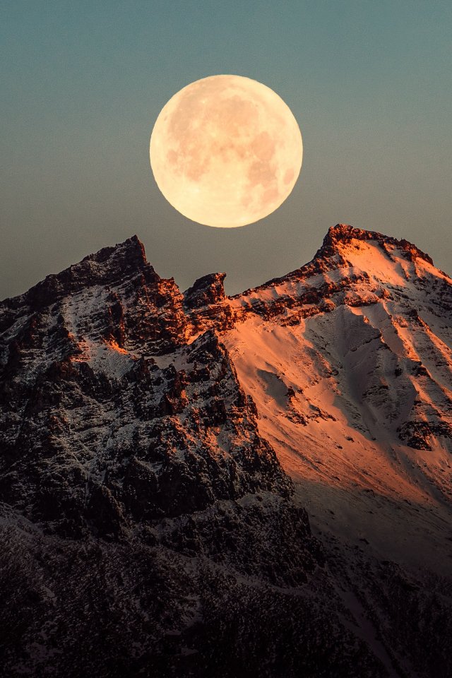 Обои: Исландия, луна, горы - 640x960
