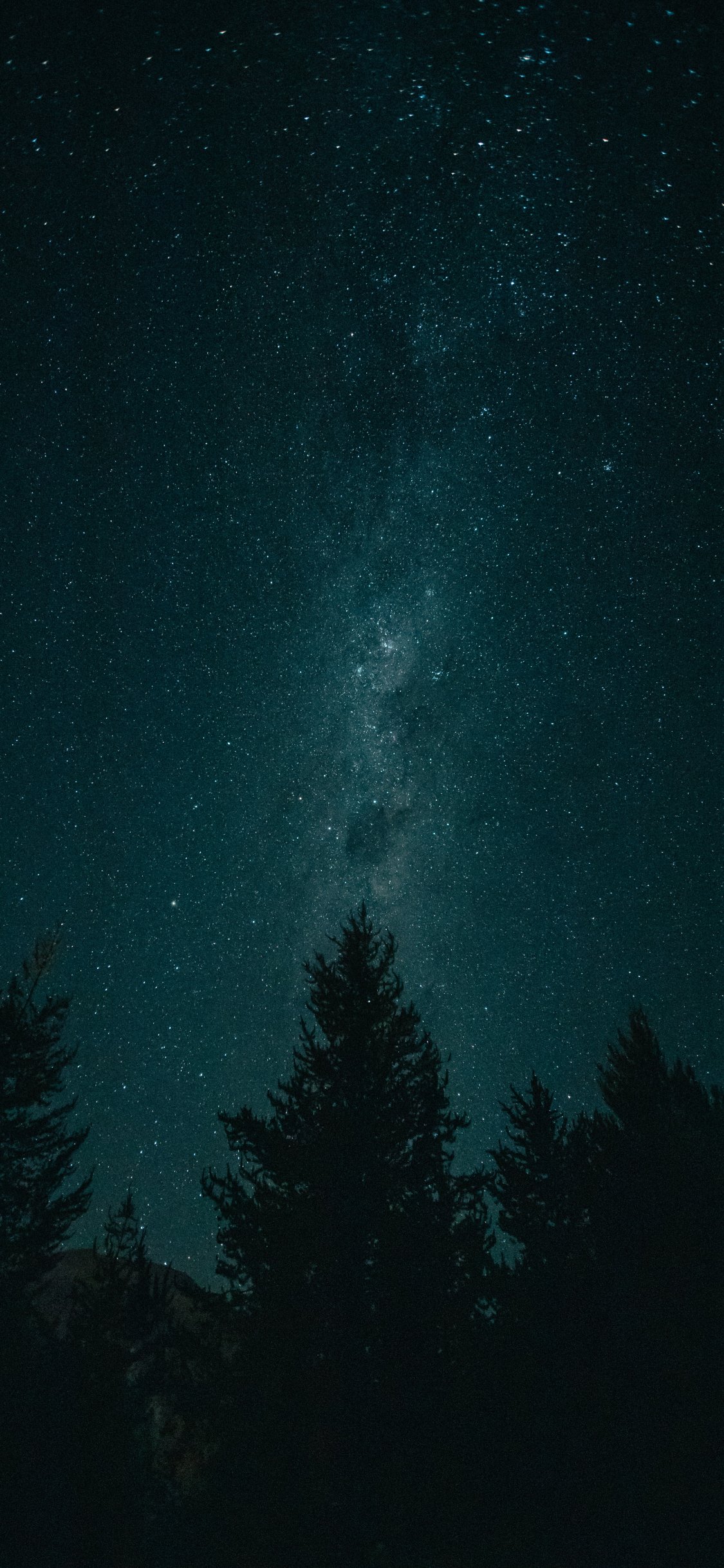 Обои: ночь, звездное небо, лес - 1125x2436