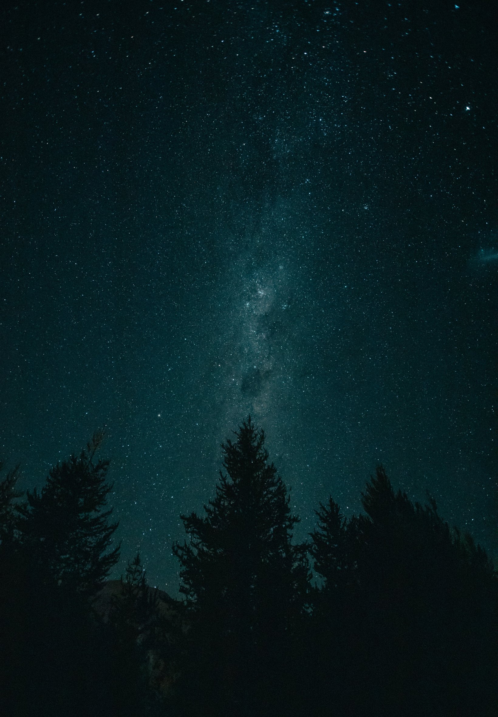 Обои: ночь, звездное небо, лес - 1640x2360
