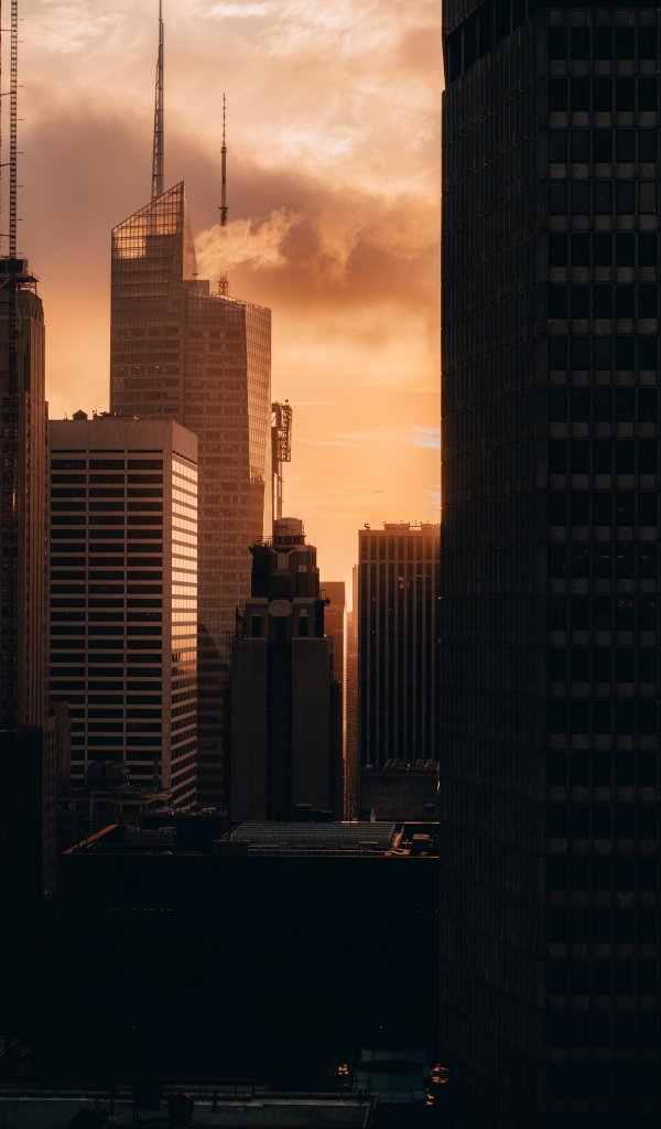 Обои: вечерний город, здания - 600x1024