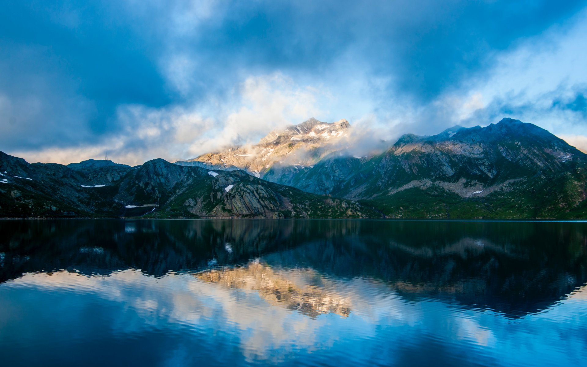 Обои: горы, озеро, облака - 1920x1200