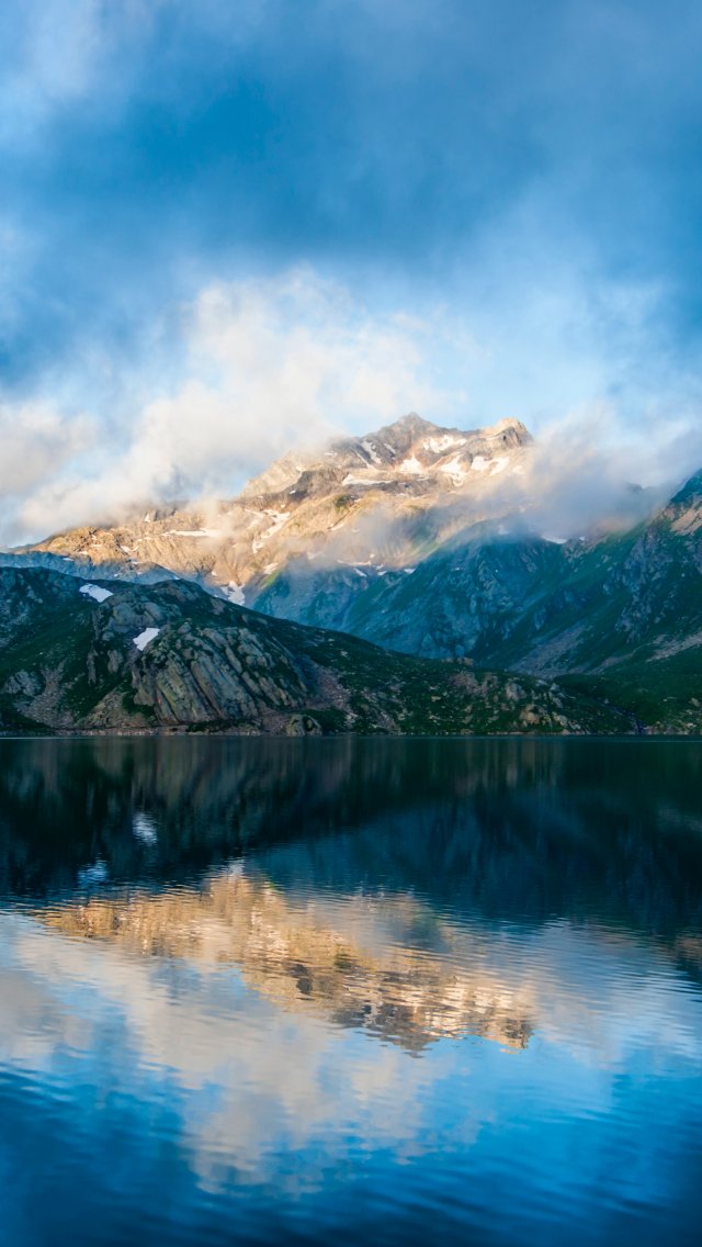 Обои: горы, озеро, облака - 640x1136
