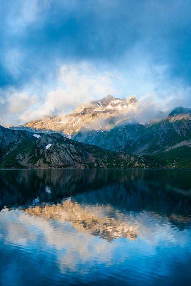 Обои: горы, озеро, облака - 640x960