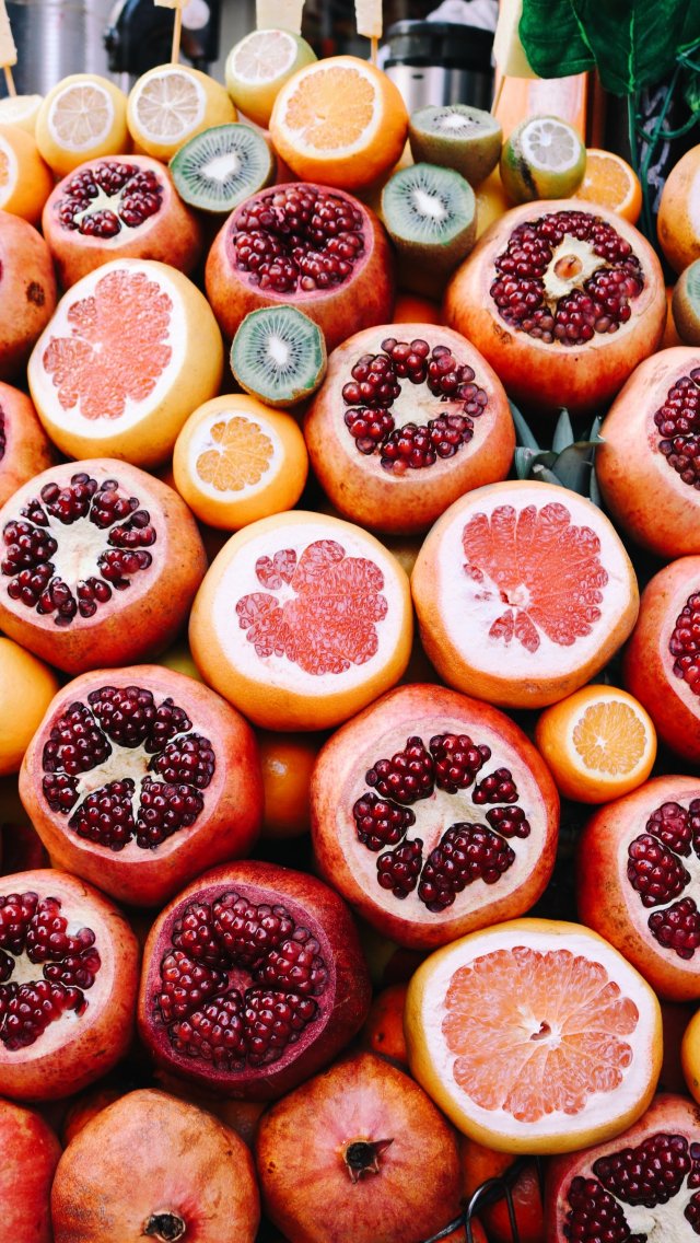 Обои: фрукты, цитрусовые, гранат - 640x1136