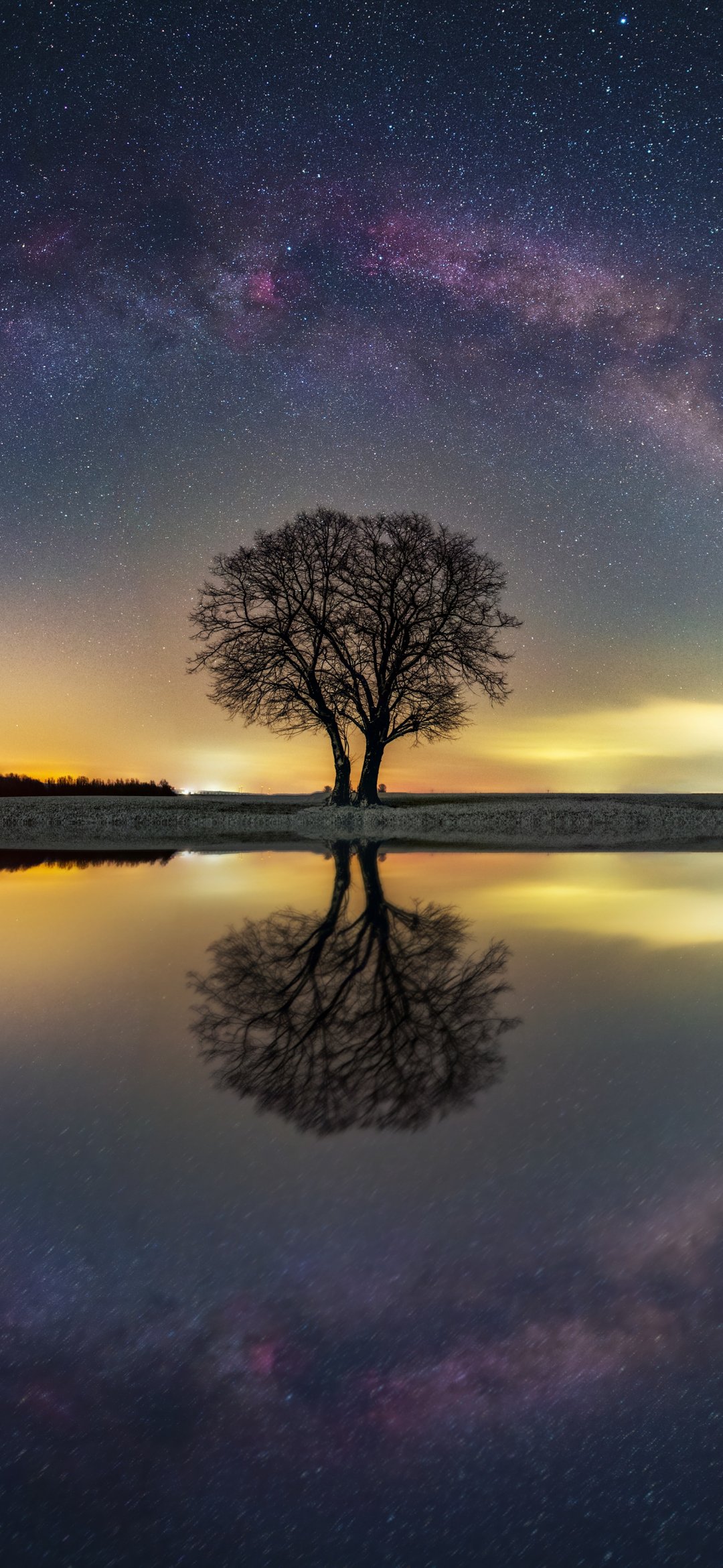 Обои: млечный путь, дерево, озеро - 1080x2340