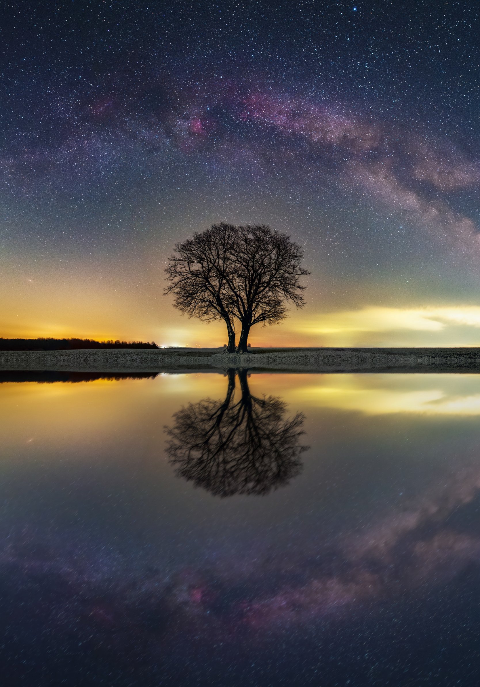 Обои: млечный путь, дерево, озеро - 1668x2388