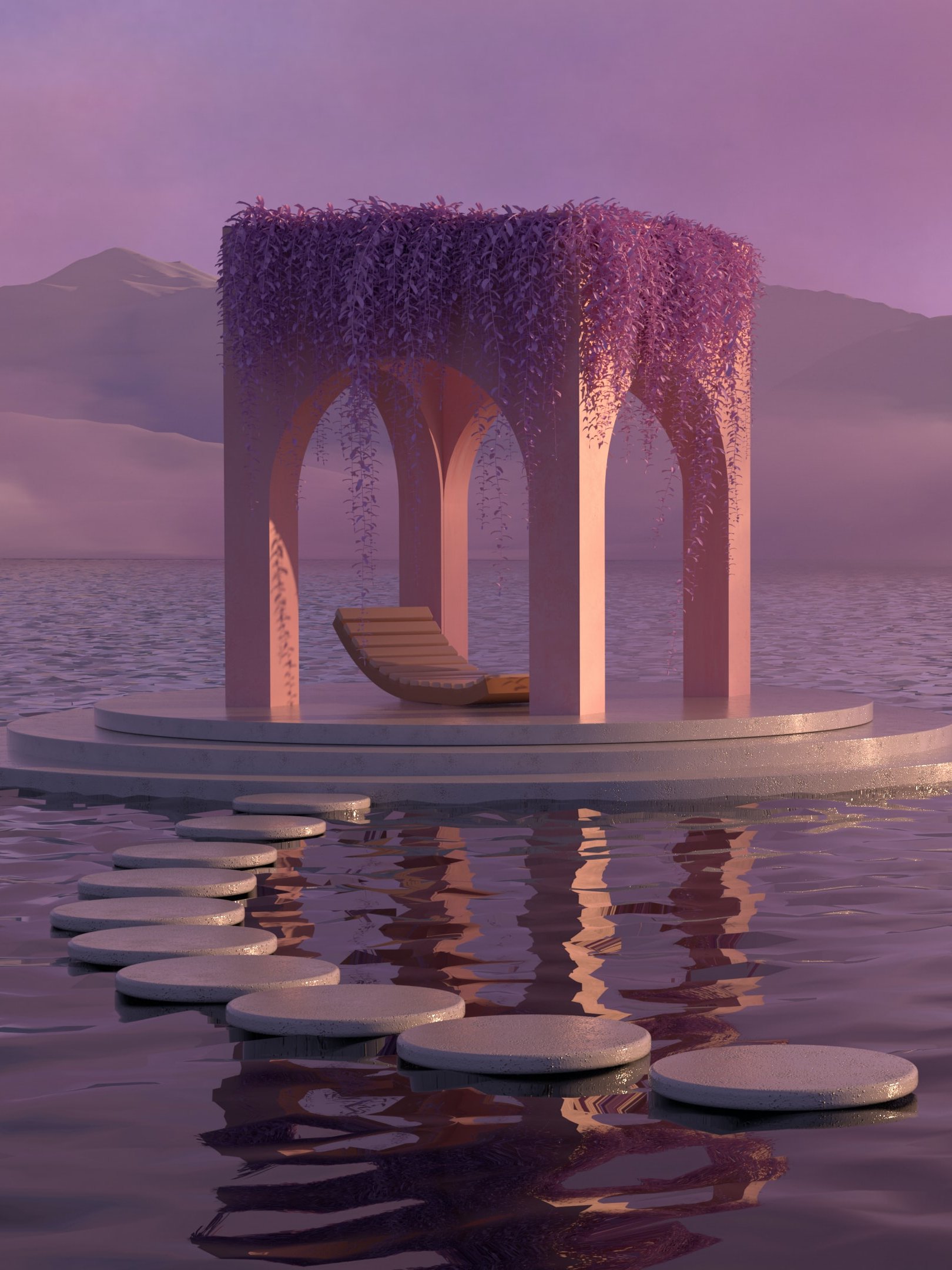 Обои: 3D моделирование, розовый, вода - 1620x2160