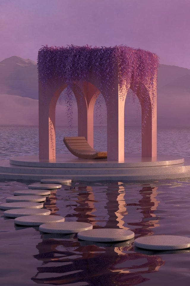 Обои: 3D моделирование, розовый, вода - 640x960