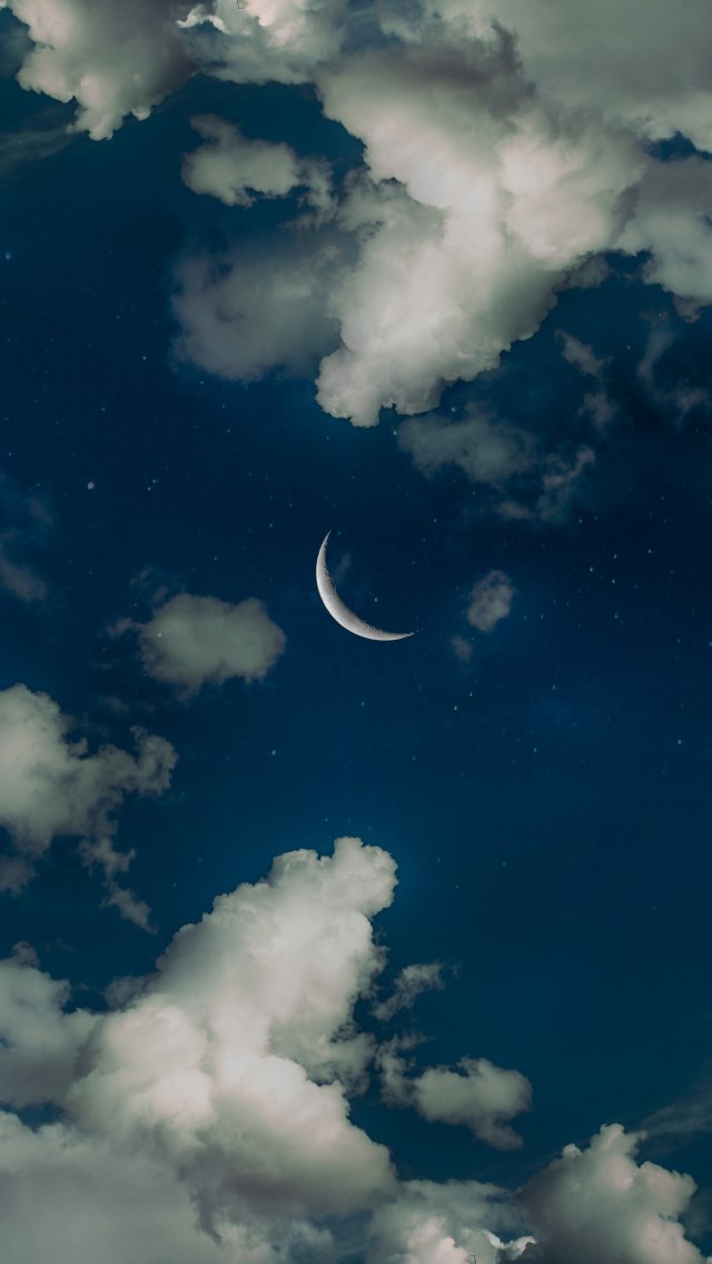 Обои: месяц, звезды, облака - 640x1136