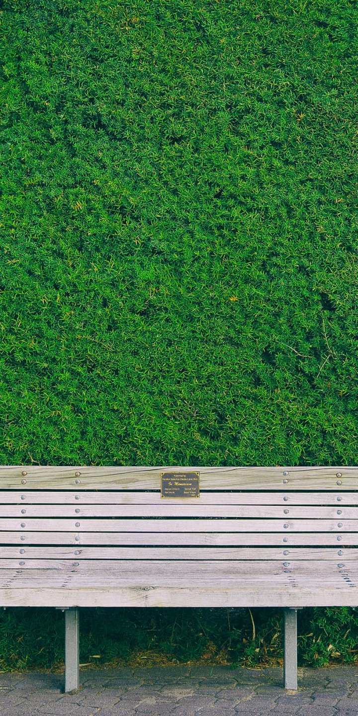 Обои: скамейка, изгородь, зеленый - 720x1440